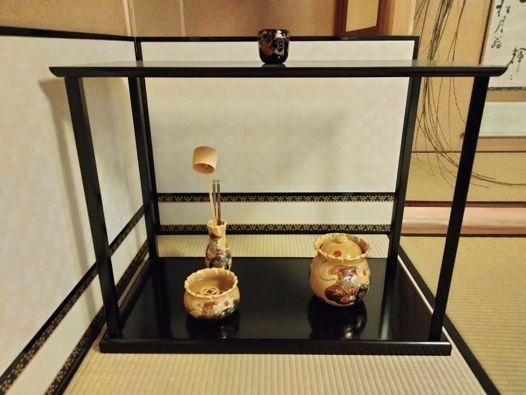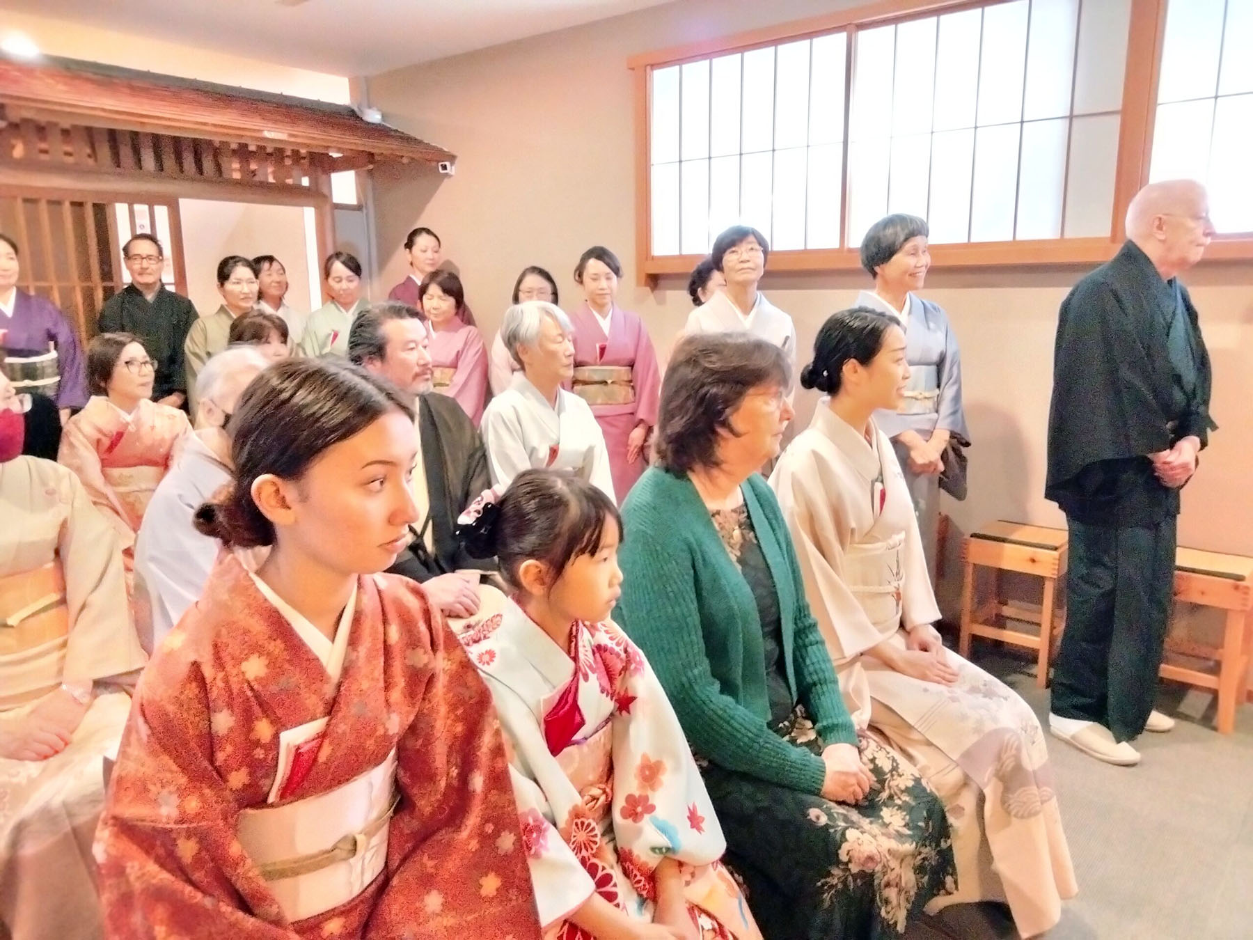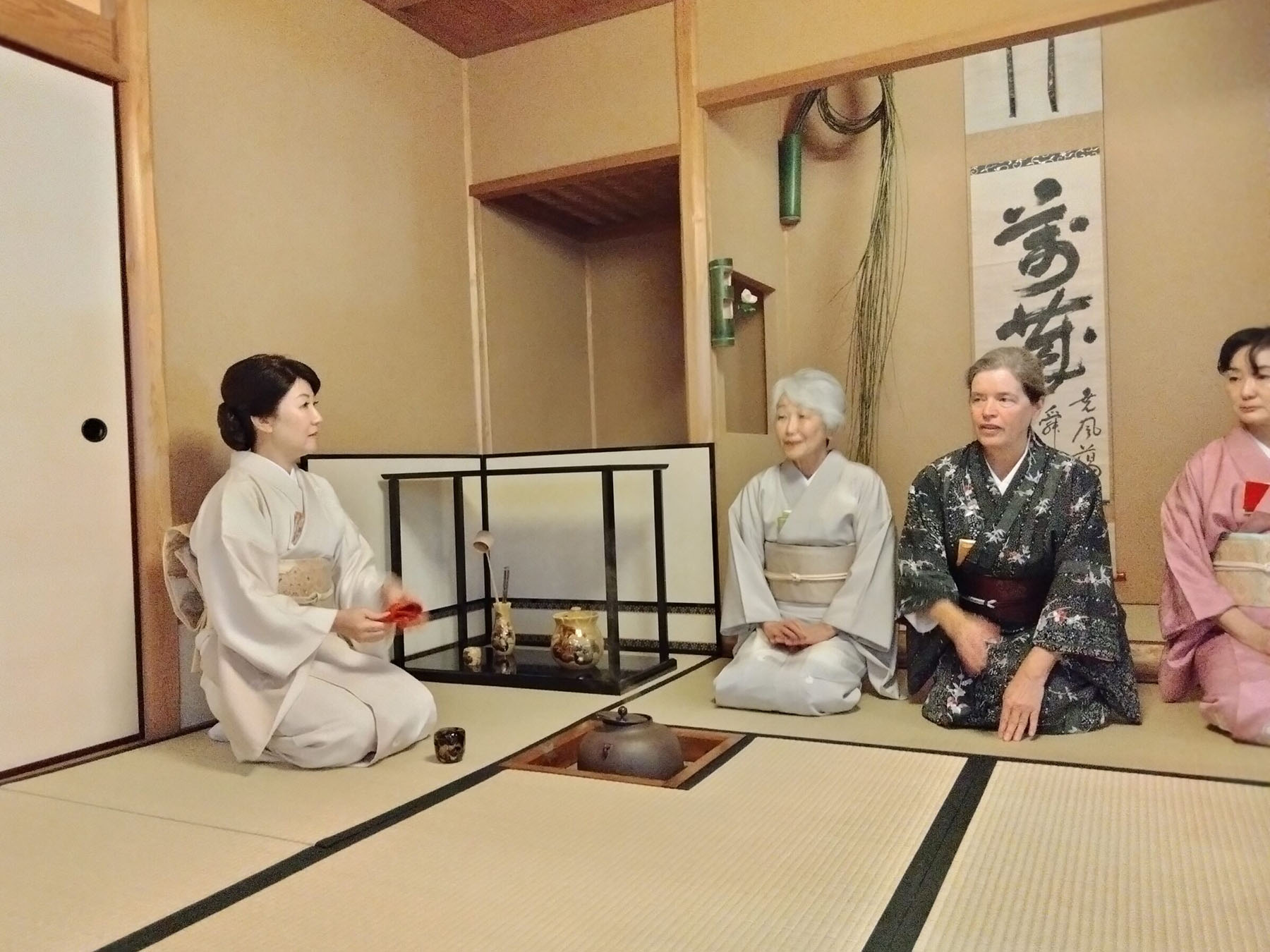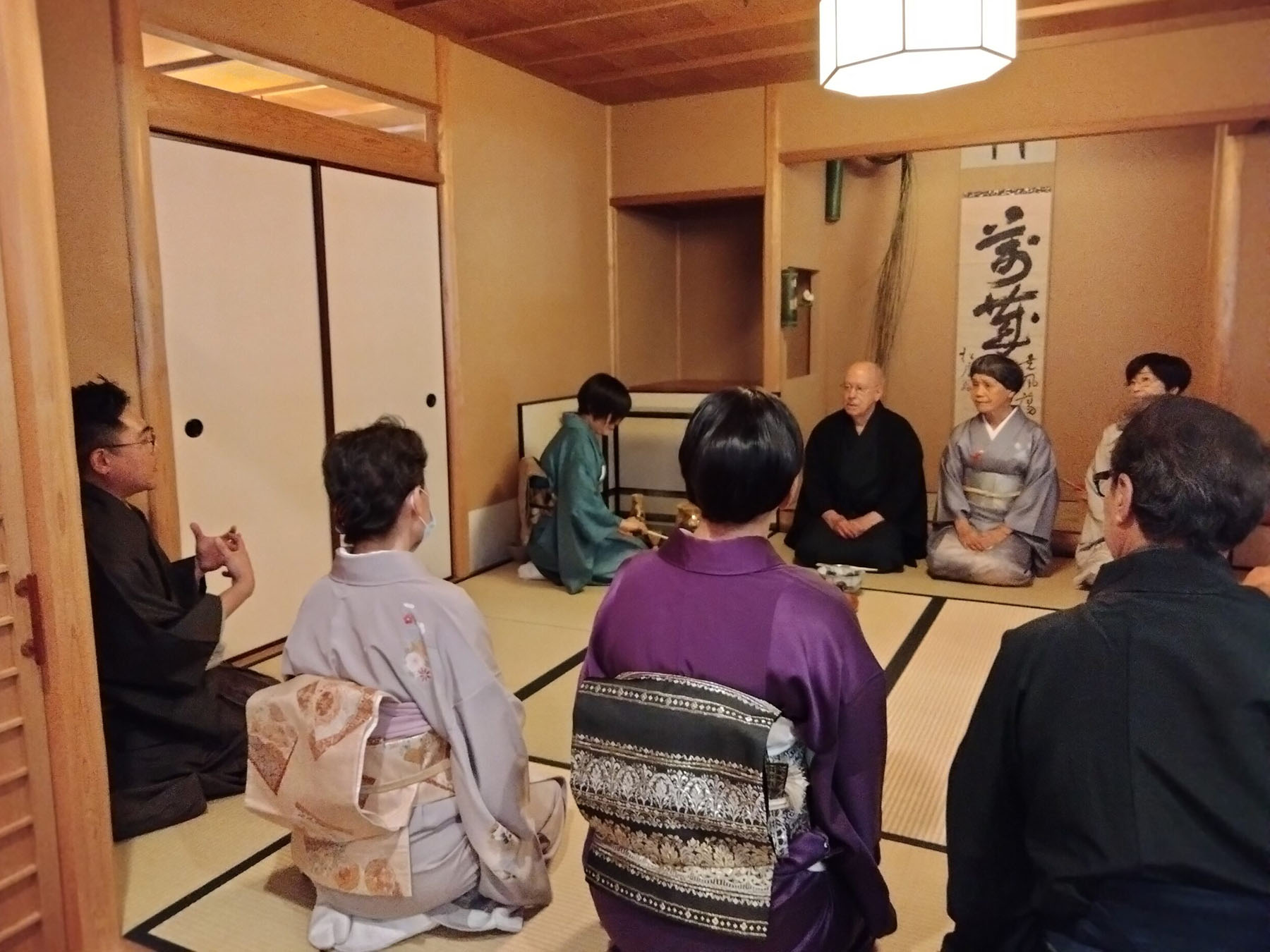 - 三席では亭主を岩崎宗律、半東を植田亮介、正客をバートレット宗榮裏千家サンフランシスコ出張所所長がつとめました。